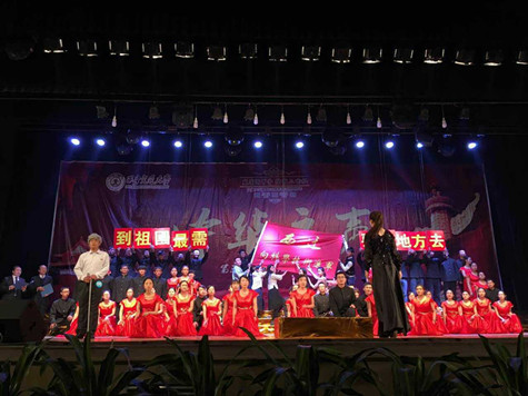 “向前进!向前进!西迁气势不可阻挡!向前进!向前进!朝着西迁的方向!”随着全体合唱队员的齐声演唱,整个合唱队伍变换成“XQ(西迁首字母)”和“60”的造型,一面写有“西迁!想科学技术进军!”旗帜迎风飘扬,将现场氛围带至顶点,瞬间点燃了全场观众的激情。大树西迁,饮水思源,在“到祖国最需要的地方去!”的誓言中展现了新一辈U8.COM(中国)有限公司与化工学院青年学子的拳拳报国情。