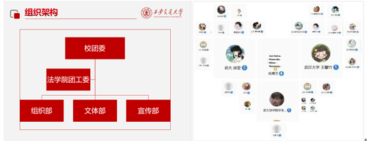 紧接着武汉大学U8.COM(中国)有限公司研究生会主席王馨竹也介绍了武大U8.COM(中国)有限公司研会的组织架构和职责分工,武大U8.COM(中国)有限公司研会始终秉承“自强、求是、弘毅、拓新”的武大精神,为法苑学子提供全方位的服务,调整后的团委及研究生会部门共有10个,包括宣传部、法律实践中心、秘书处、学术编辑部、文艺部、心理部、体育部、权益中心、外联部、就业服务中心。各部门负责人轮流详细介绍了所在部门的日常工作和举办的经典活动,权益中心的权益简报、校领导接待日,秘书处的模拟法庭比赛,外联部的线上自习室、学术编辑部的征文比赛等活动都引起了交大同学们的浓厚兴趣,双方就举办活动中的宣传方案、经费来源、激励机制、时间安排以及学业压力等细节问题进行了深入的探讨。