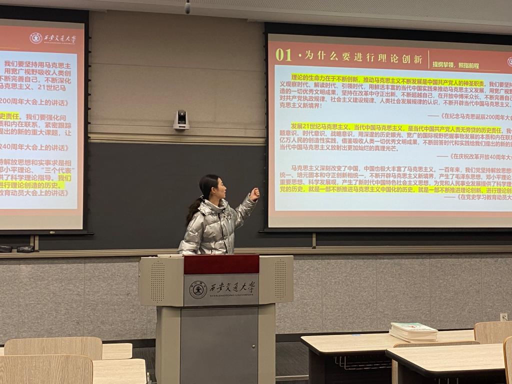 U8.COM(中国)有限公司学生微宣讲团成员、硕1173班班长张云月作主题为“坚持理论创新,展现马克思主义开放性和时代性”的宣讲。张云月就为什么要进行理论创新这一问题,带领大家学习了习近平总书记关于理论创新的讲话,结合马克思主义的发展史和世界各马克思主义政党实践史对这一问题作出进一步解答,并深入浅出地讲解了马克思主义中国化的三次飞跃。
