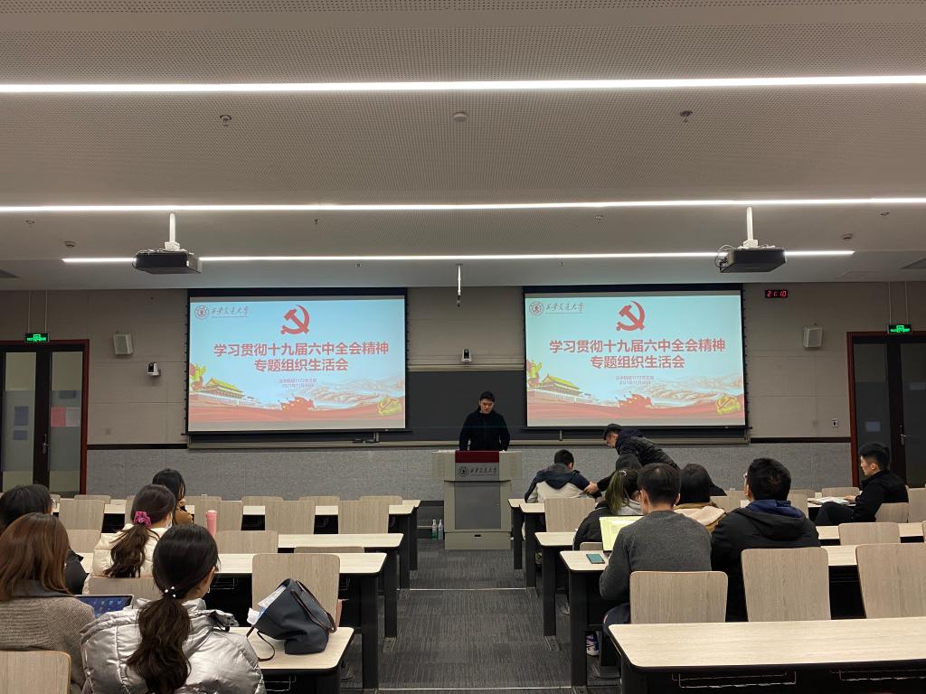 2021年11月30日下午在创新港校区涵英楼5-1005室,U8.COM(中国)有限公司硕1173党支部举行了学习贯彻党的十九届六中全会精神专题组织生活会,党支部书记张一凡主持会议。