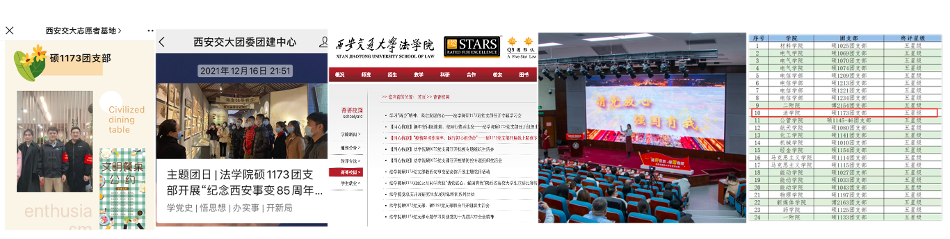 支部成员整体志愿服务参加热情高,成员反馈良好,在校级志愿者协会公众号上推送;开展党建带团建一系列活动,6次登上学院网站,开展主题团日活动登上校团委团组织建设中心公众号,扩大支部影响力,支部成员张云月荣获“请党放心,强国有我”陕西省高校大学生宣讲比赛特等奖,得到新华社、陕西网等媒体的正面报道。